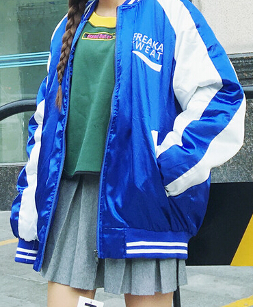 HARAJUKU VINTAGE BOMBER JACKET blue