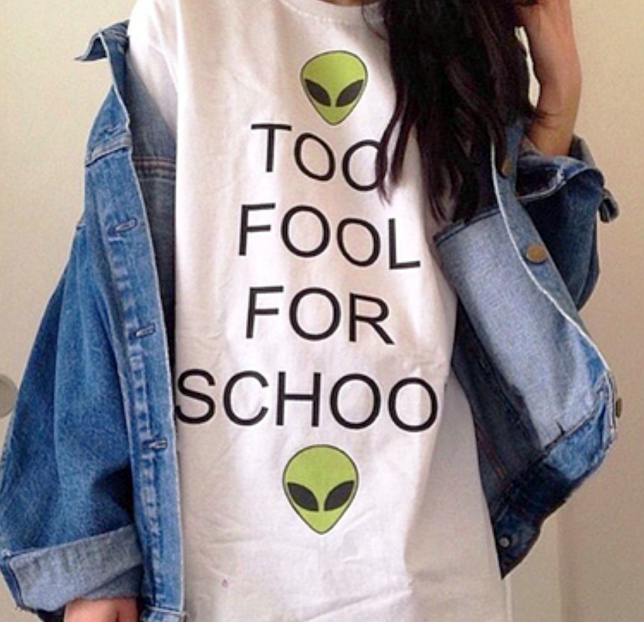 "TOO FOOL FOR SCHOOL" ALIEN TEE