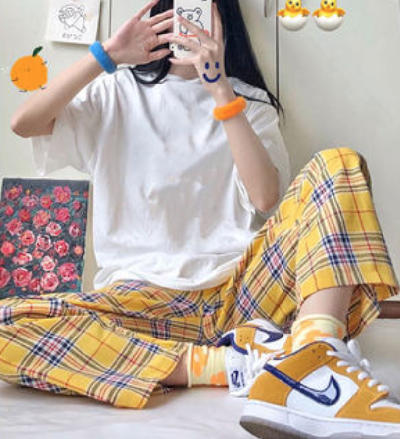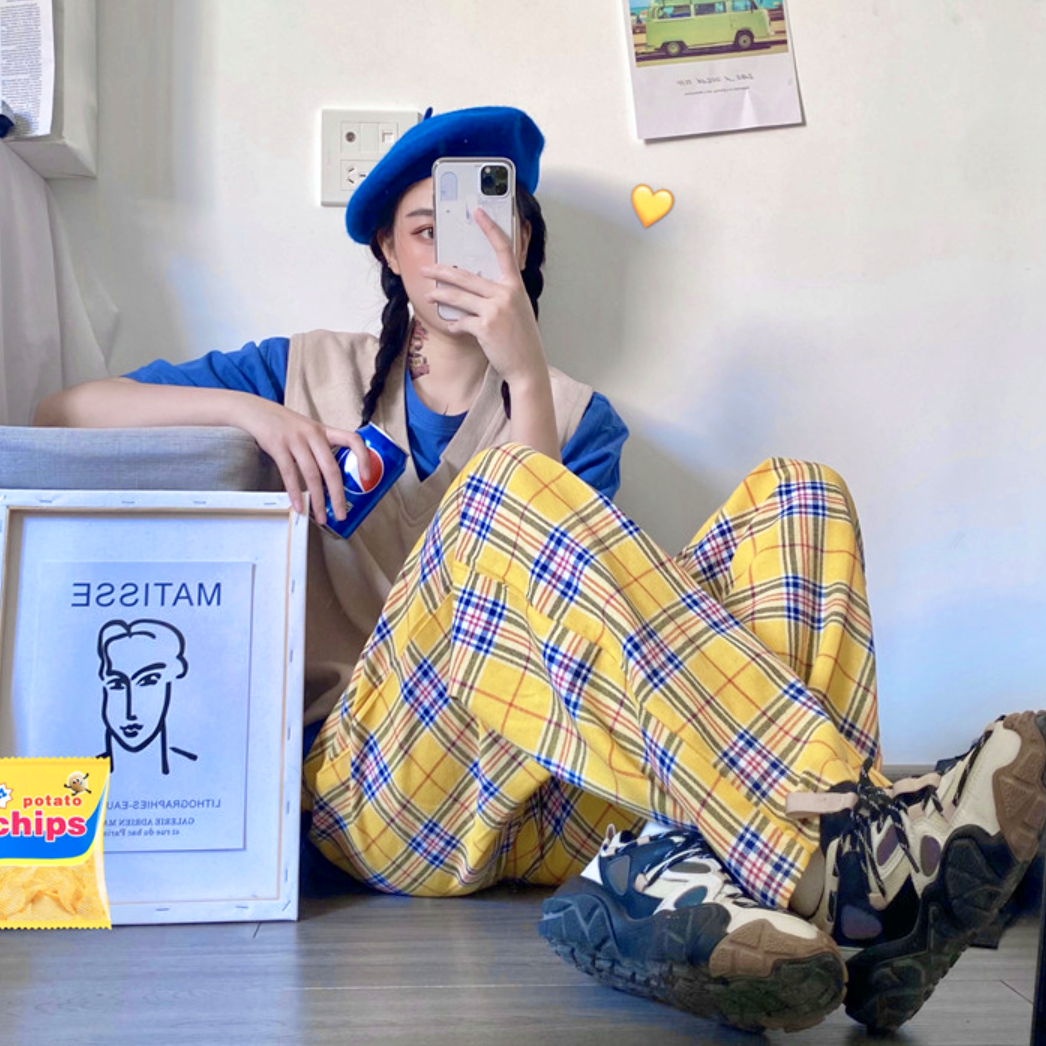 CHECKER JOGGER PANTS WITH BLACK BAND