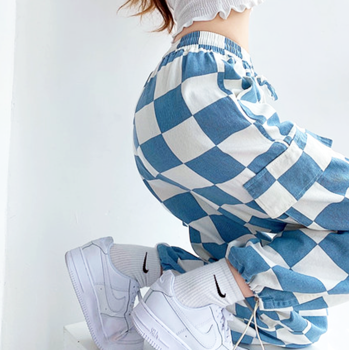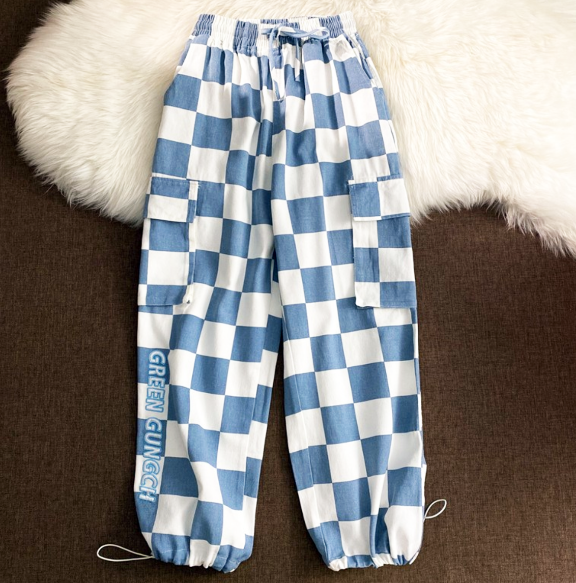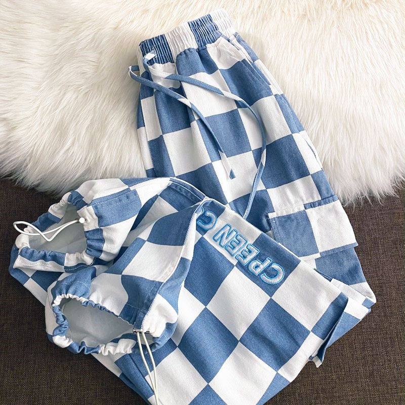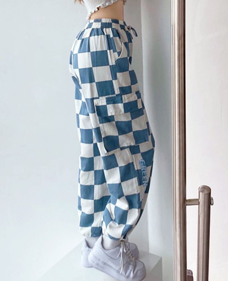 BLUE CHECKBOARD JOGGER PANTS