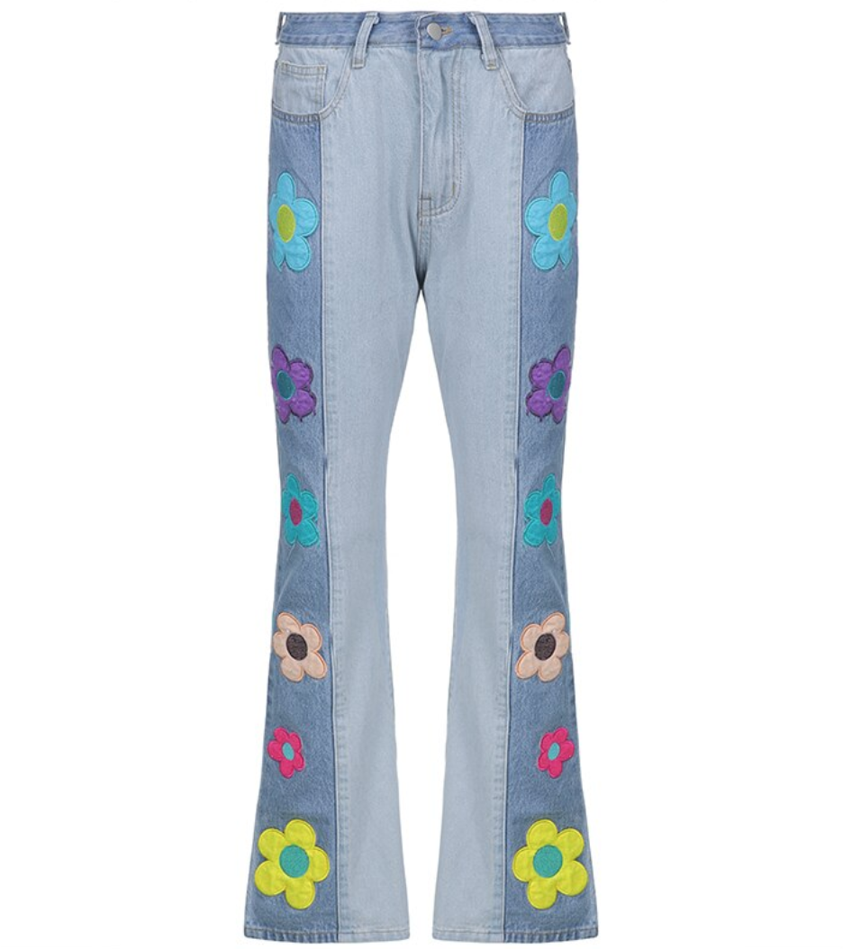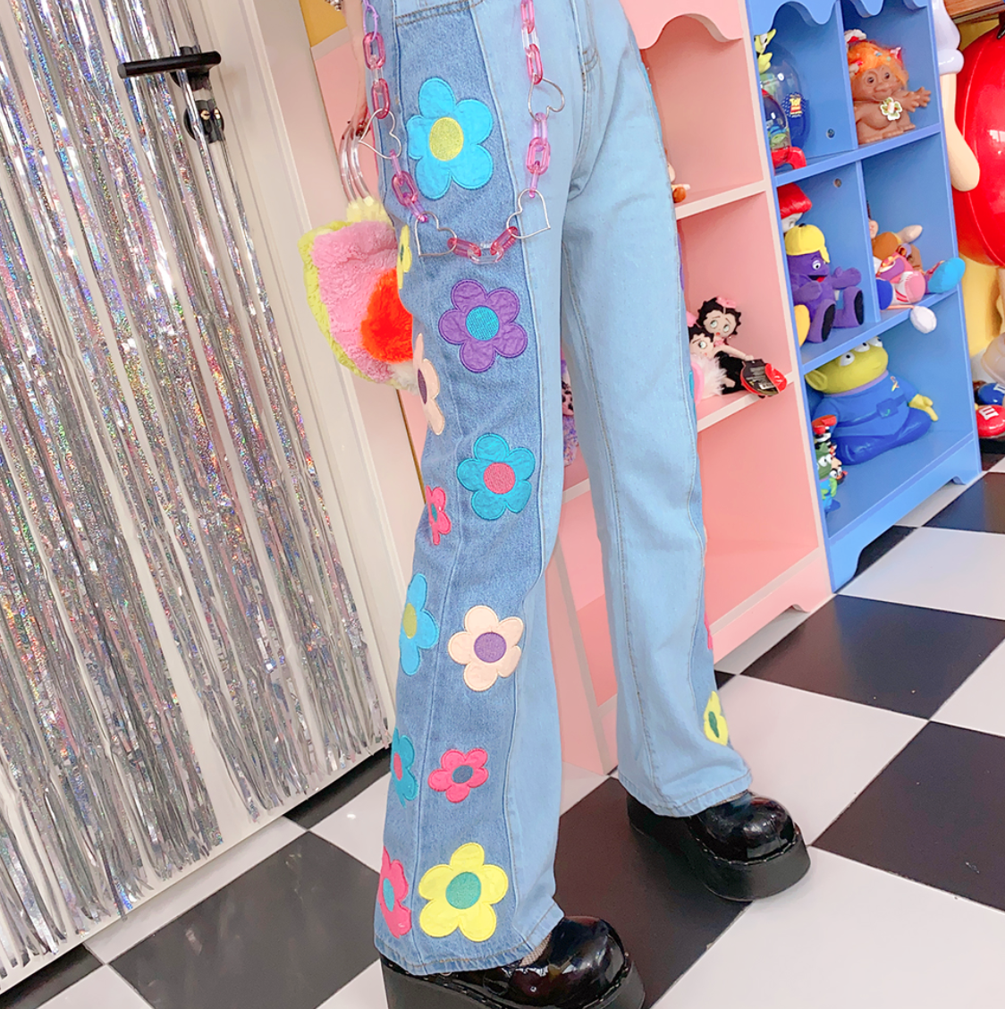 ALIEN AND RAINBOW EMBROIDERY JEANS