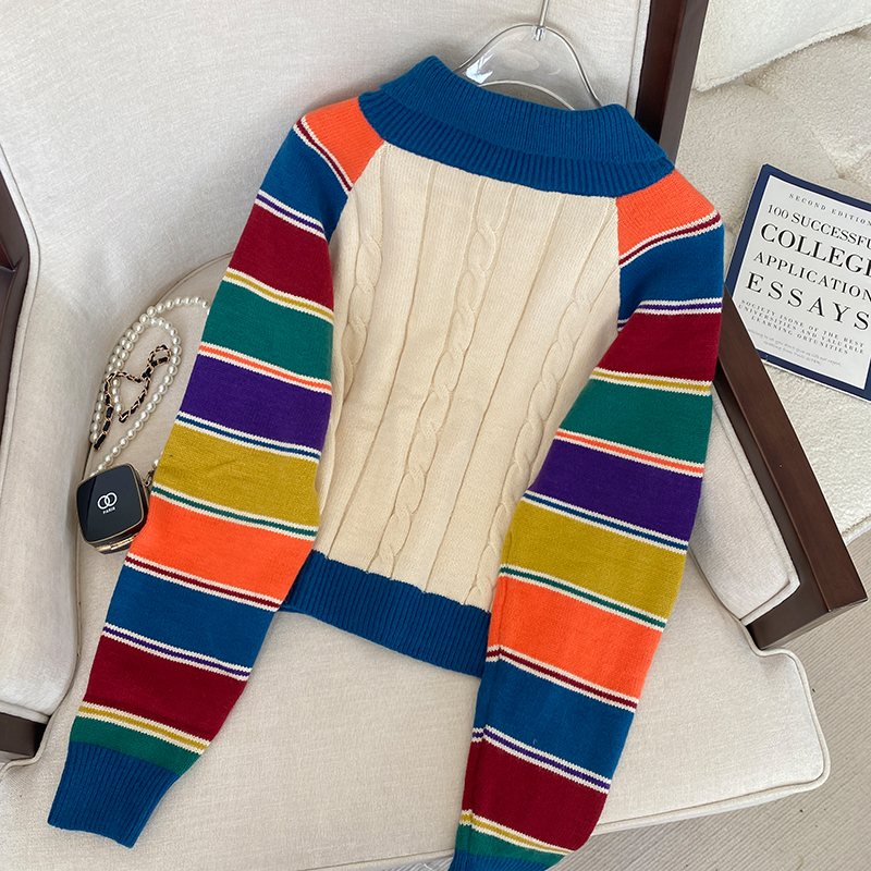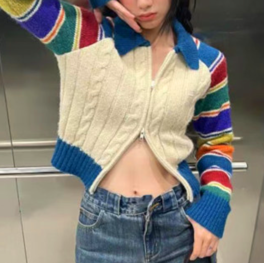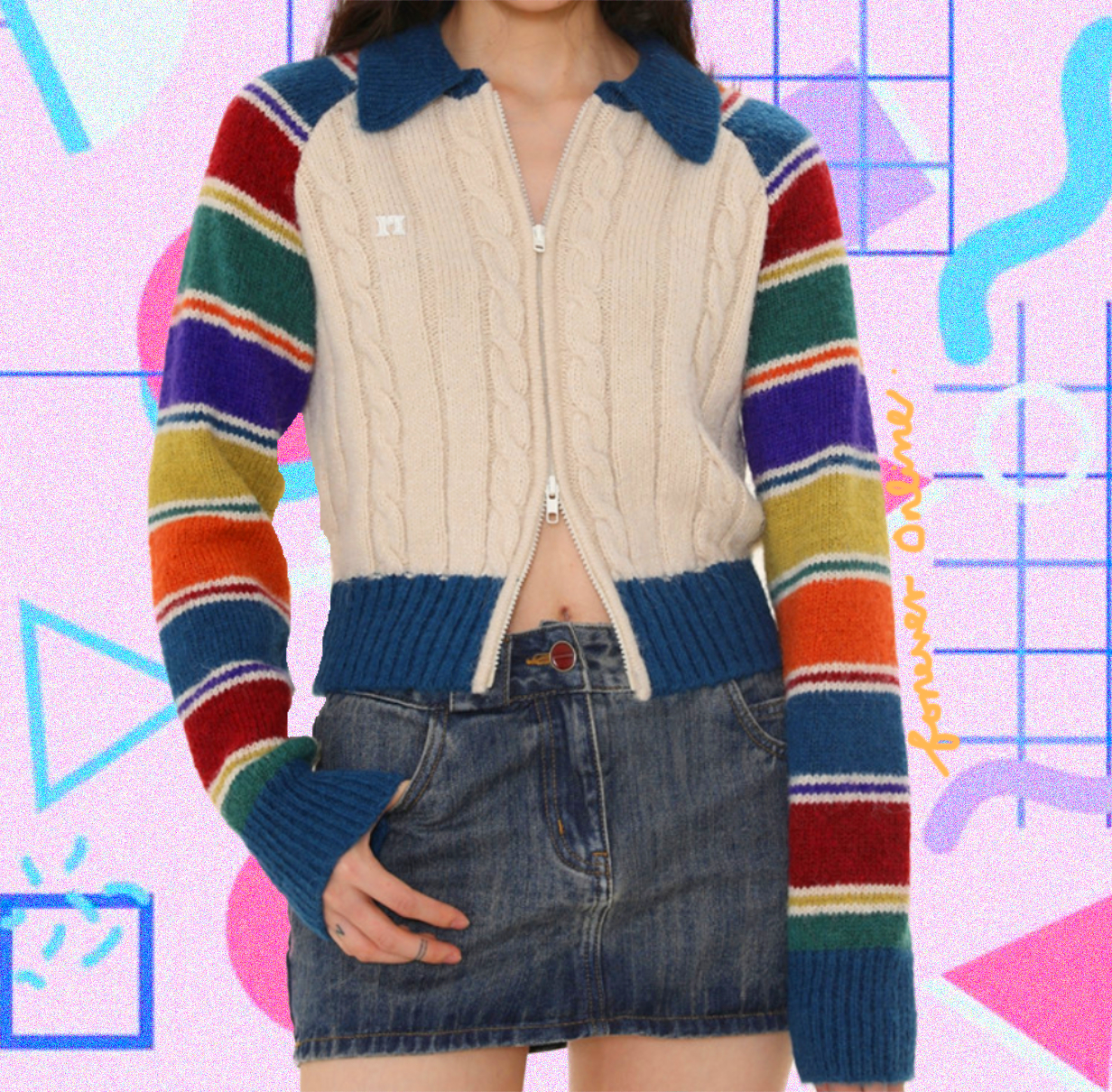 RAINBOW SLEEVE ZIP UP CARDIGAN