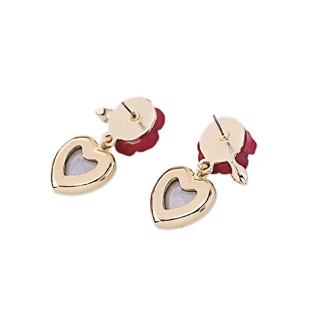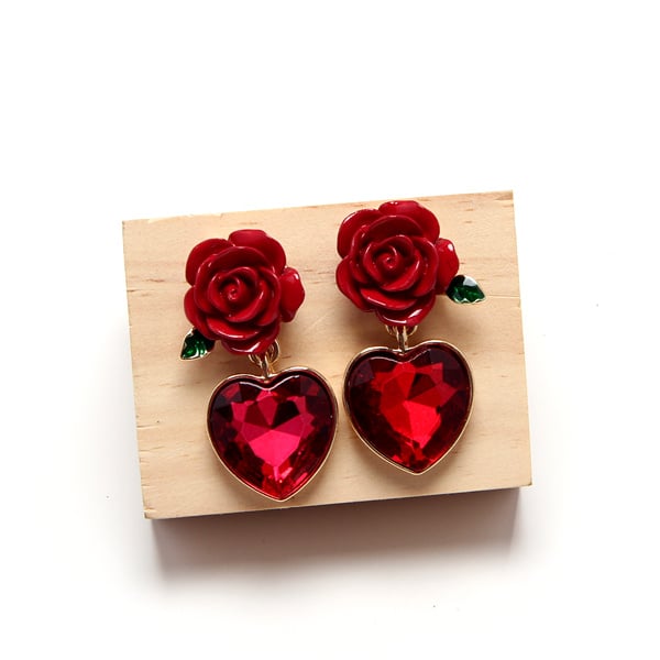 RED HEART AND ROSE EARRINGS