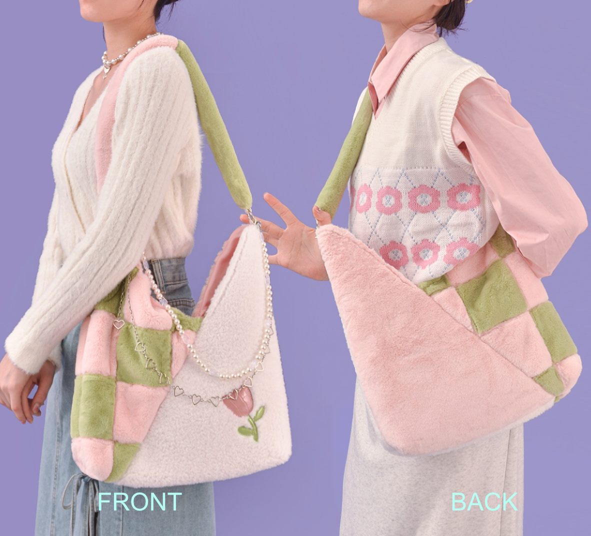 RETRO TULIPS & CHECKERBOARD CROSSBODY / HANDBAG