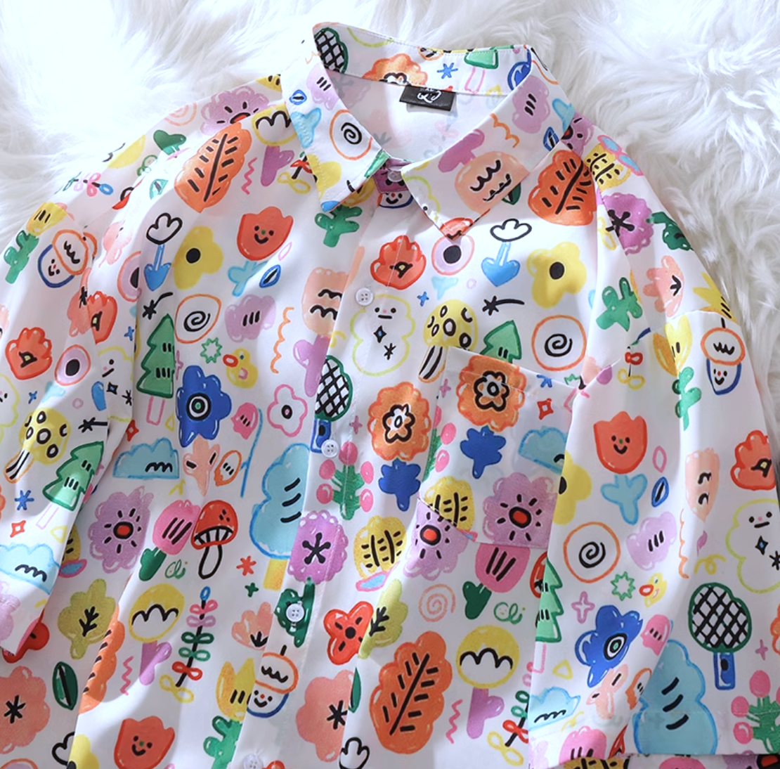 COLORFUL CUTE DRAWING ALL OVER PRINTED SHIRT