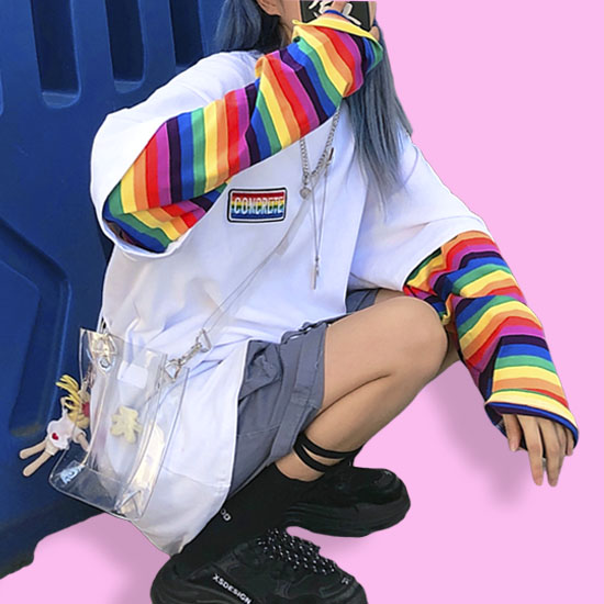 RAINBOW SLEEVE ZIP UP CARDIGAN