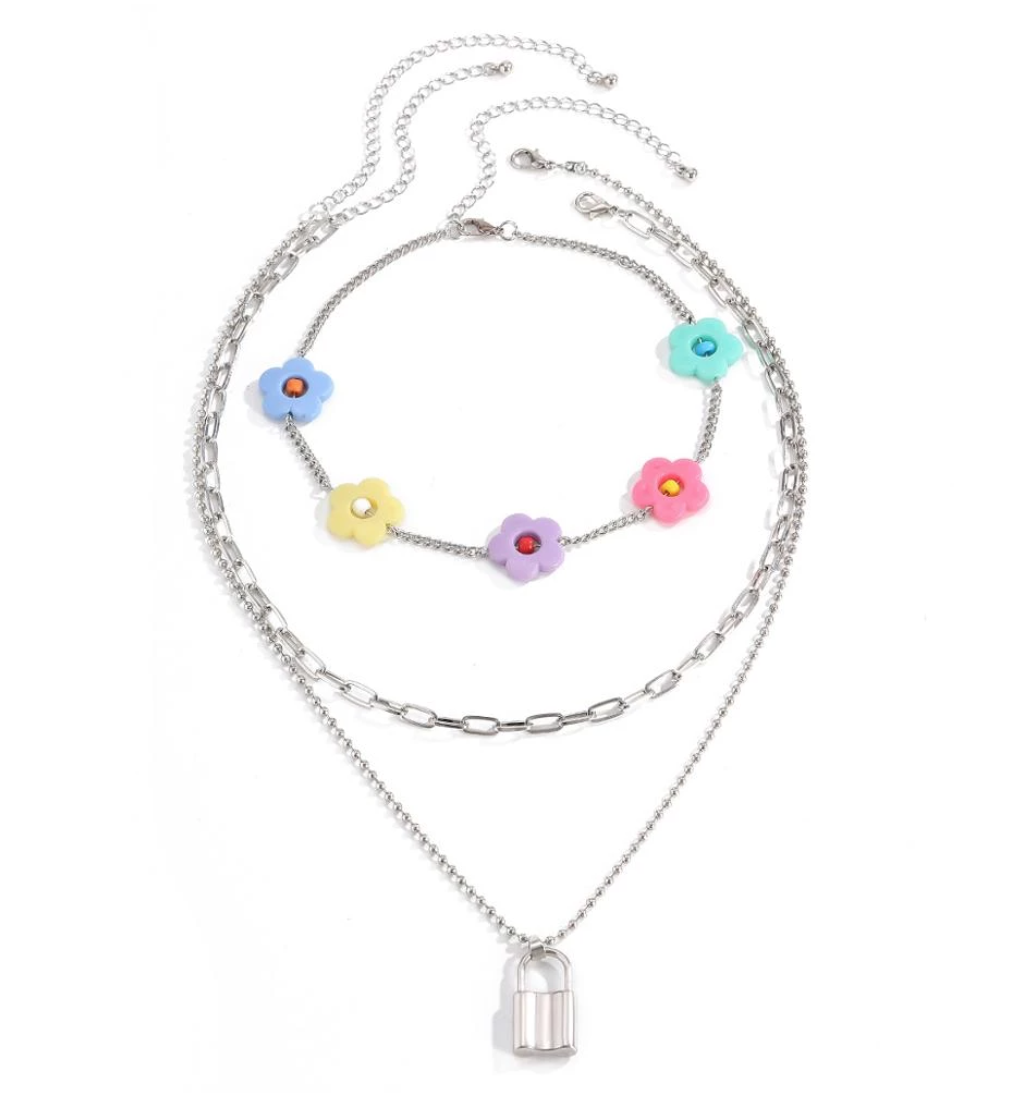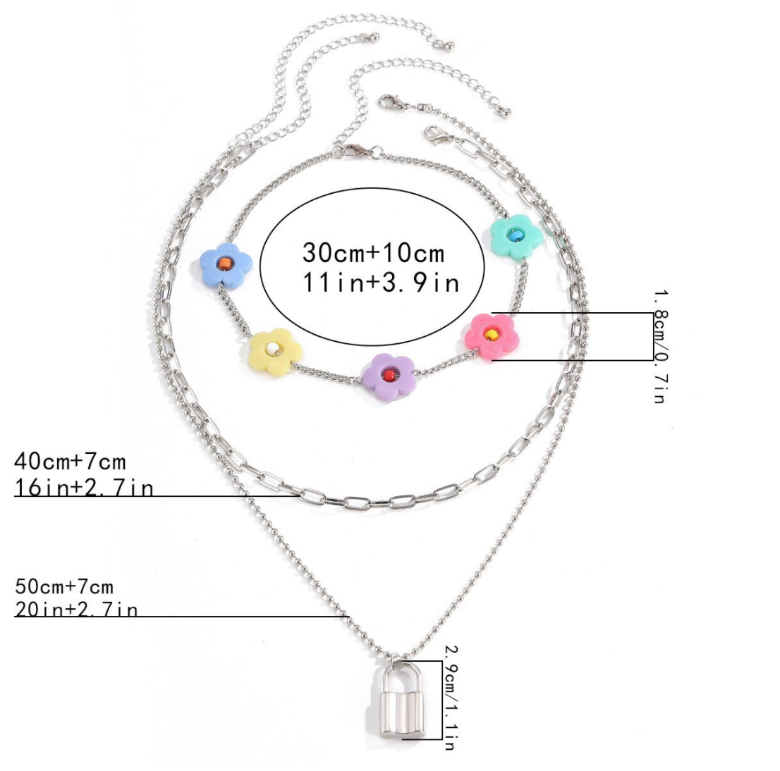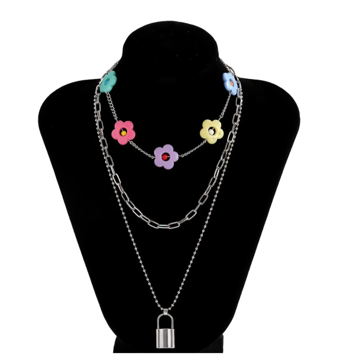 RAINBOW FLOWERS AND LOCK CHOKER NECKLACE SET