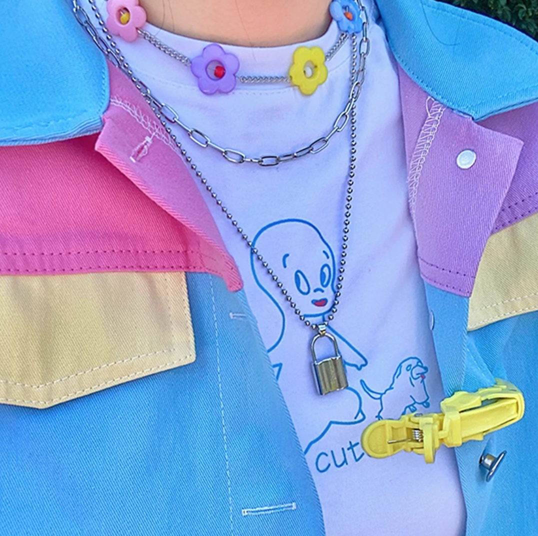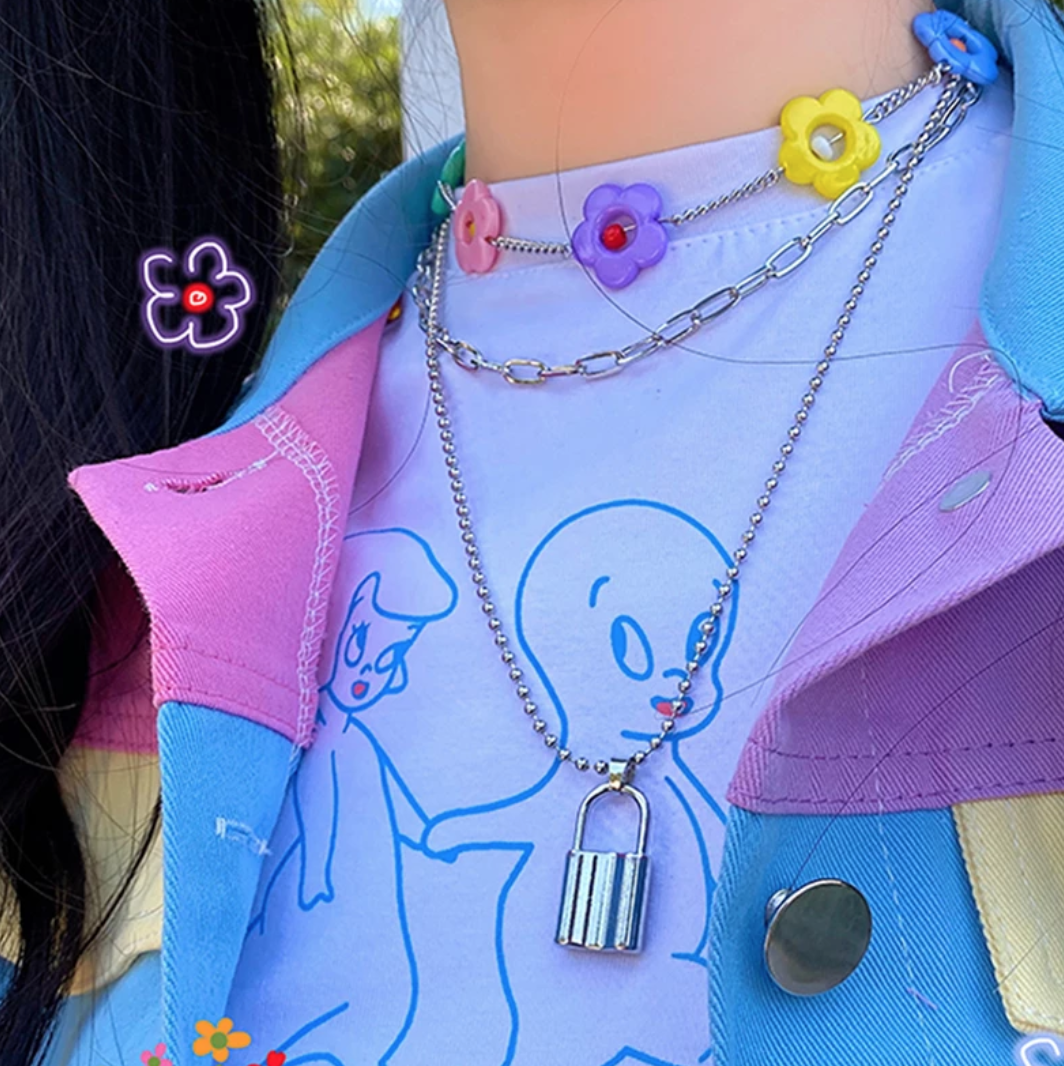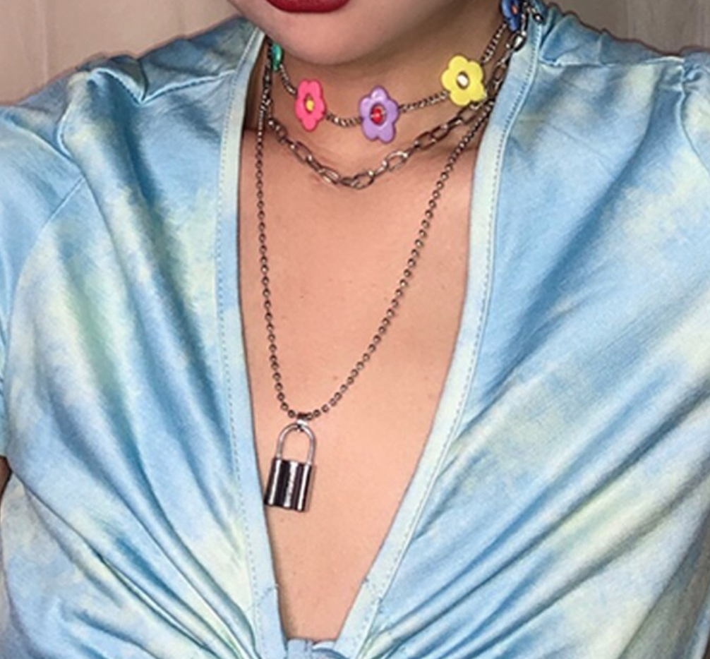 RAINBOW FLOWERS AND LOCK CHOKER NECKLACE SET