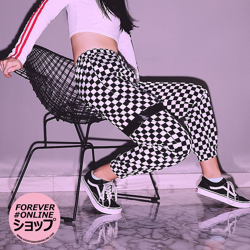 CHECKER JOGGER PANTS WITH BLACK BAND