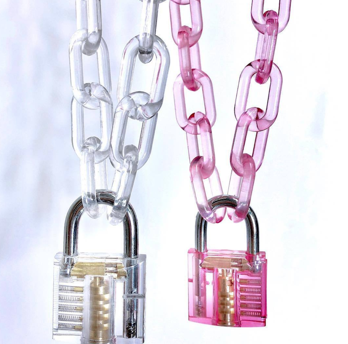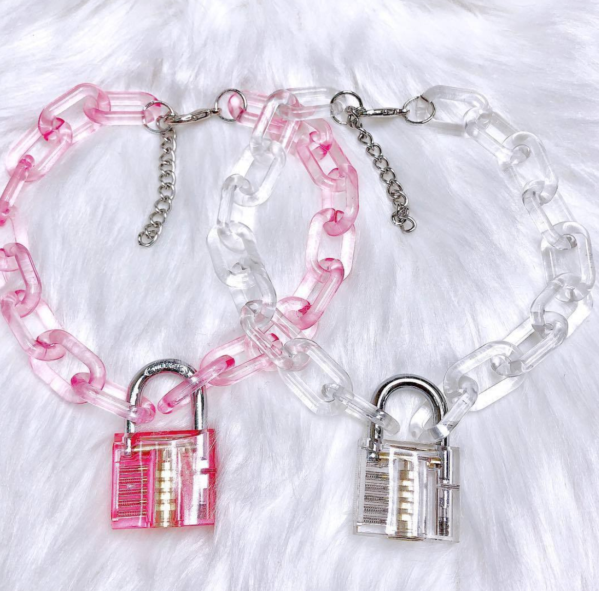 ++FREE SHIPPING WORLDWIDE++ Length : 40-46 CM adjustable Color : Pink / Transparent Material : Stainless steel