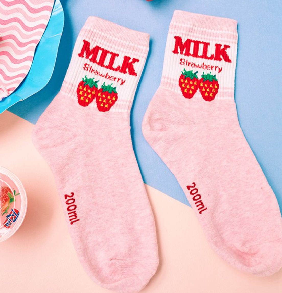 200ML STRAWBERRY MILK SOCKS ( 2 colors )