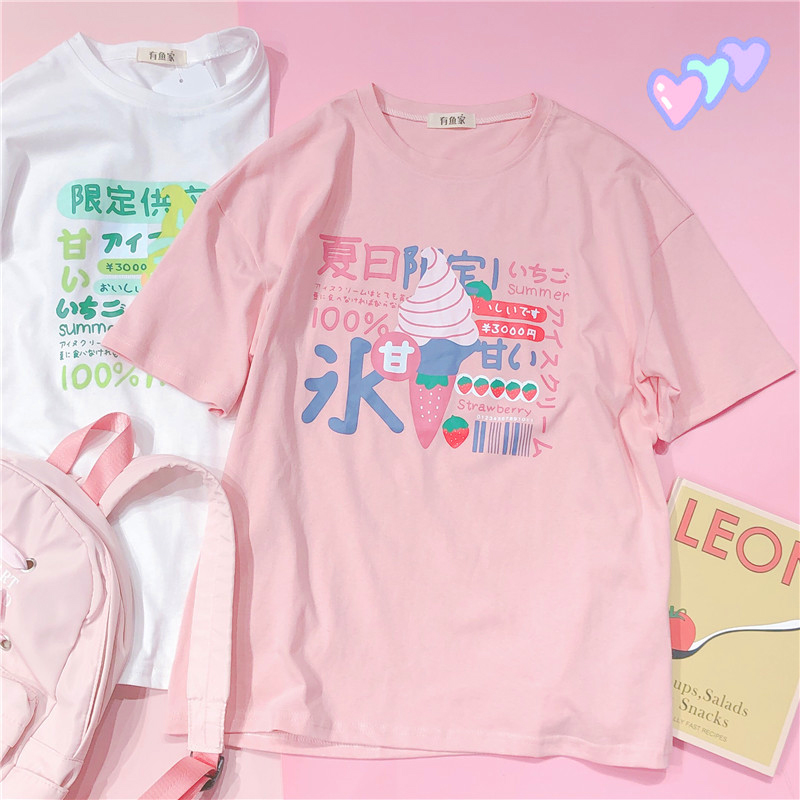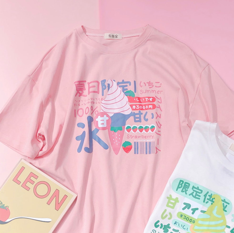 CUTE ICE CREAM TEE ( Strawberry / Matcha )