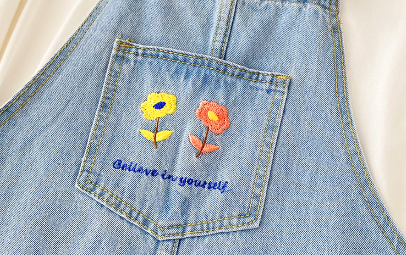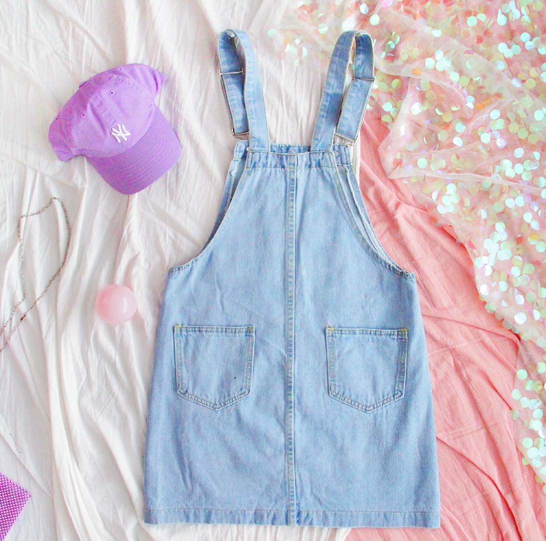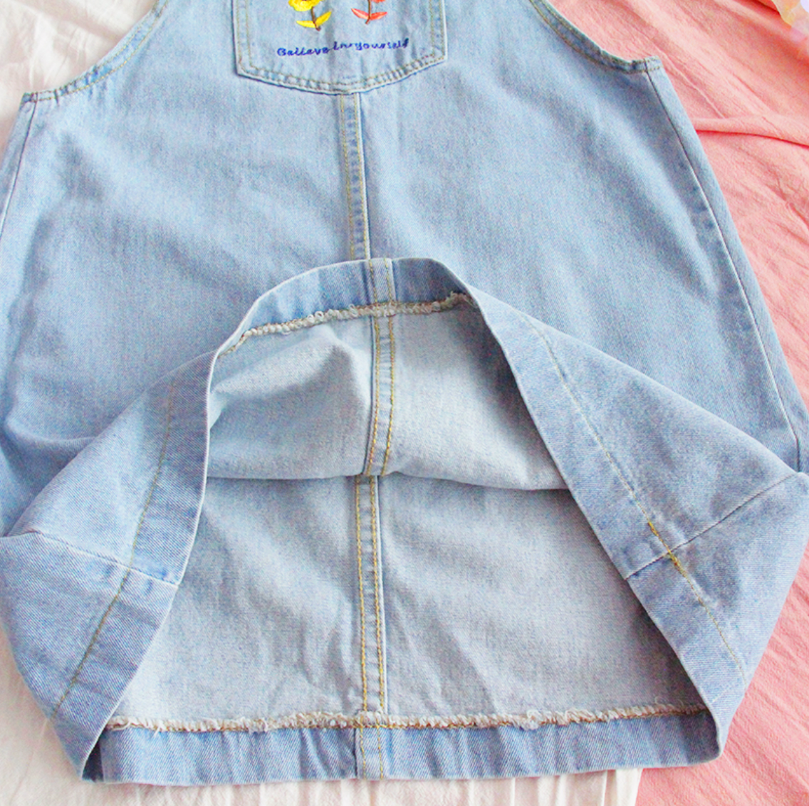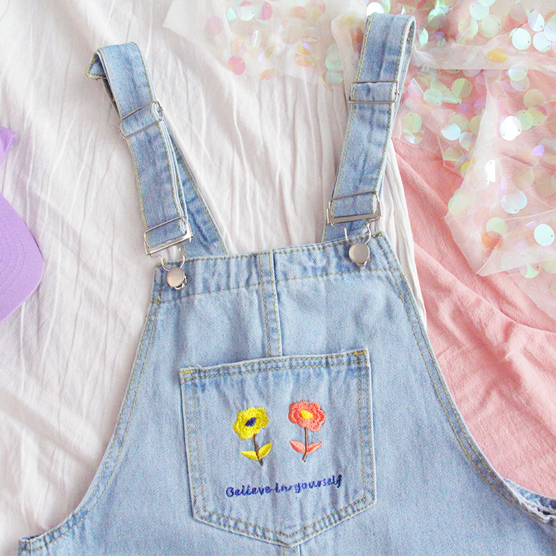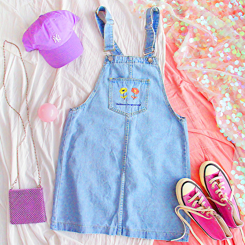 FLOWERS OVERALL DENIM DRESS