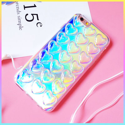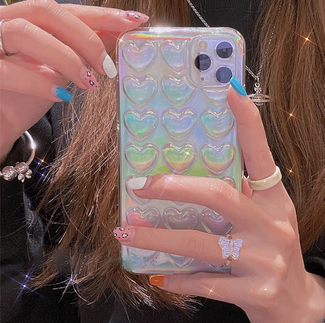 HOLOGRAPHIC BUBBLE HEART PHONE CASE